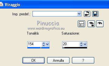 Regola>Tonalità e saturazione>Viraggio, con i settaggi precedenti.