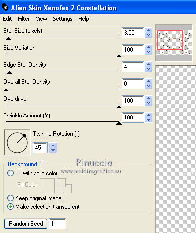 Ripeti l'Effetto Constellation, cambiando soltanto Star Size con 3,00, senza cliccare su Random Seed.
