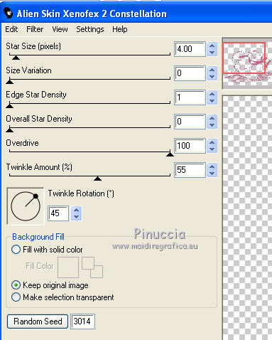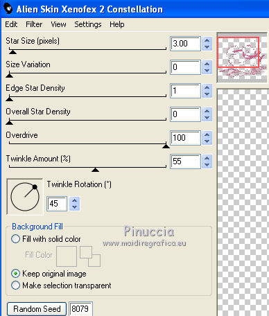 Ripeti l'Effetto Constellation, cambiando Star Size con 3,00 e cliccando una volta su Random Seed.