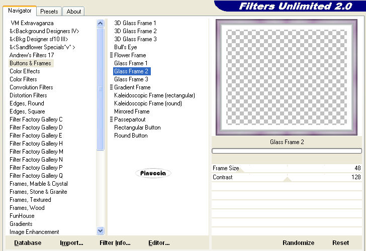 Effetti>Plugins>Filters Unlimited - Buttons & Frames - Glass Frame 2.