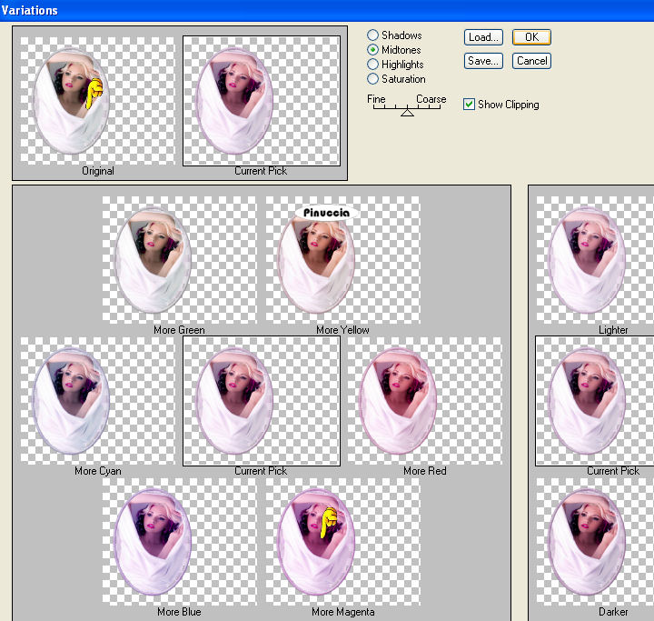 Effetti>Plugins>Adjust - Variations (qui puoi scegliere i settaggi adatti ai colori della tua immagine).