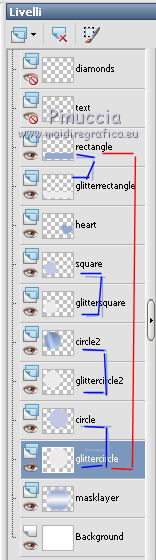 (il glitter sarà sempre il livello sottostante) e vai a Livelli>Unisci>Unisci giù.
