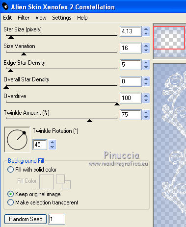 Ripeti l'Effetto Constellation, cambiando soltanto Star Size con 3,13, senza cliccare su Random Seed.
