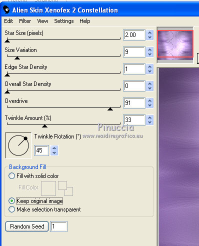 Ripeti l'Effetto Constellation con gli stessi settaggi, ma cliccando una volta su Random Seed.