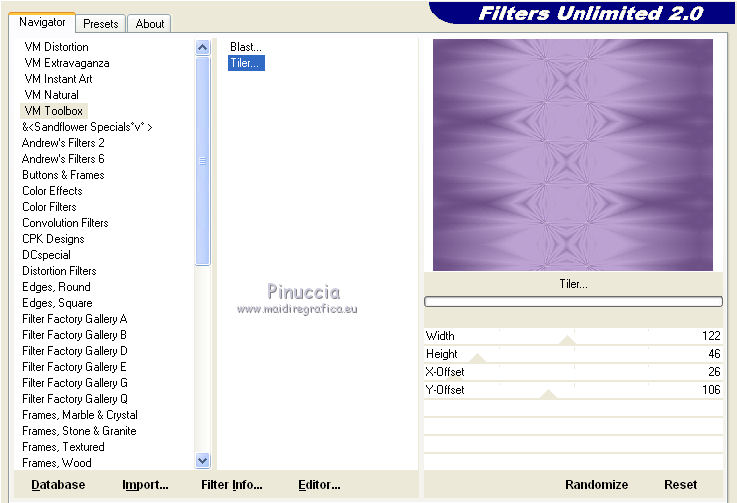 Effetti>Plugins>Filters Unlimited 2.0 - VM Toolbox - Tiler.