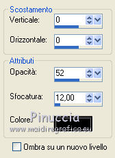 Su tutti i livelli di questi tubes: Effetti>Effetti 3D>Sfalsa ombra, con i settaggi precedenti.