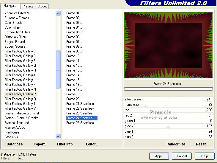 Effetti>Plugins>Filters Unlimited - Filter Factory Gallery P - Frame 24 Seamless.