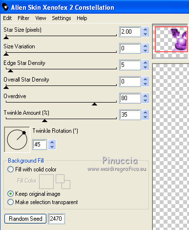 Ripeti l'Effetto Constellation con gli stessi settaggi, ma cliccando una volta su Random Seed.