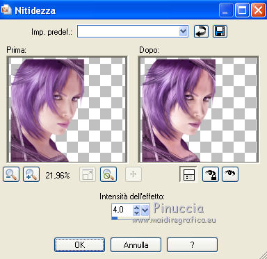Regola>Luminosità e contrasto>Nitidezza - 2 volte con i seguenti settaggi.