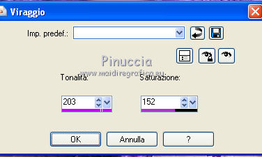 Regola>Tonalità e saturazione>Viraggio, con i settaggi precedenti.