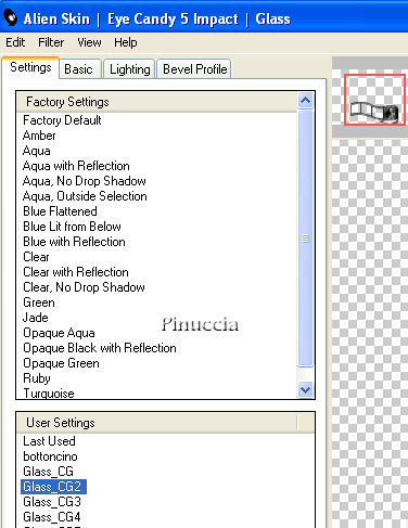 Effetti>Plugins>Alien Skin Eye Candy 5 Impact - Glass.
