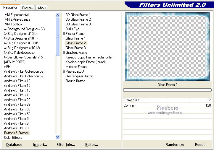 Effetti>Plugins>Filters Unlimited 2.0 - Buttons & Frames - Glass Frame 2.