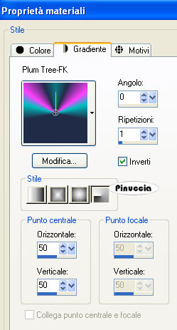 Passa il colore di primo piano a Gradiente e seleziona il gradiente Plum Tree-FK con i seguenti settaggi.