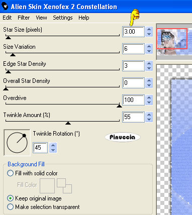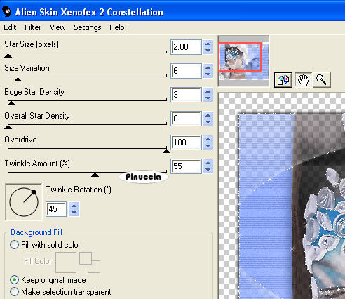 Ripeti l'Effetto Constellation portando Star Size a 3,00 e cliccando una volta su Random Seed.