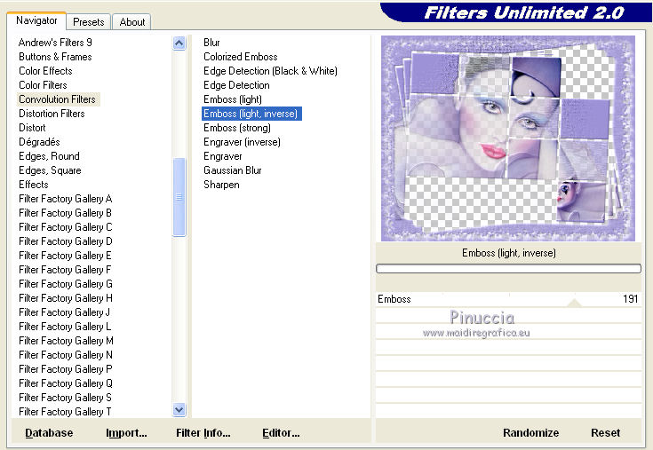 Effetti>Plugins>Filters Unlimited 2.0 - Convolution Filters - Emboss (light,inverse).