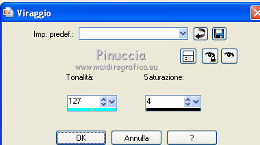 Regola>Tonalità e saturazione>Viraggio, con i settaggi precedenti.