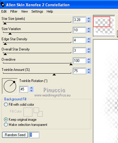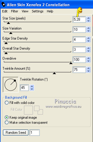Effetti>Plugins>Alien Skin Xenofex - Constellation - Cambia soltanto Star Size, senza Random Seed.