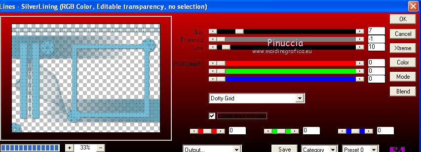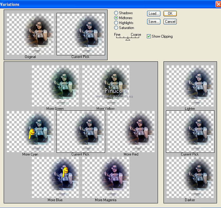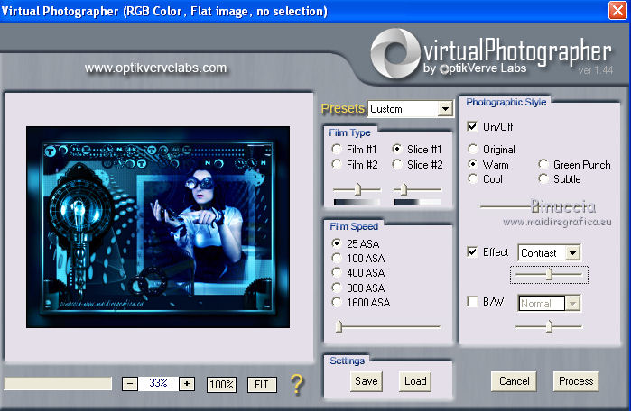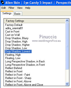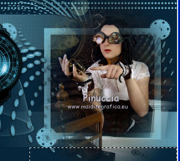 qui puoi trovare qualche risposta ai tuoi dubbi. Se l'argomento che ti interessa non è presente, ti prego di segnalarmelo. Questo tutorial è stato creato con PSP 9, ma può essere eseguito anche con le altre versioni di PSP. Per tradurlo, ho usato PSP X. Questo tutorial è una creazione di ©Christa e non può essere copiato su altri siti nè essere offerto per il download. Lo stesso vale per la mia traduzione. Il materiale viene da vari gruppi di condivisione. Il copyright appartiene ai rispettivi autori. Grazie ai creatori dei tubes che mettono a disposizione il loro lavoro in vari gruppi di condivisione. Occorrente: Materiale qui Per i tubes grazie Chaosgaby e Natasha. Per la maschera grazie Herbert HF Projekte Rispetta il lavoro degli autori, non cambiare il nome del file e non cancellare il watermark. Filtri: in caso di dubbi, ricorda di consultare la mia sezione filtri qui OptikVerve Labs - Virtual Photographer qui Nik Software - Color Efex Pro qui Graphics plus - Cross Shadow qui Alien Skin Eye Candy 5 Impact - Glass e Perspective Shadow qui Adjust - Variations qui AP01 - Lines Silverlining qui AAA Frames - Foto Frame qui ![]() Metti la maschera aditascreations_mask_16 nella cartella Maschere. Apri la seconda maschera Steampunkmask in PSP e minimizzala con il resto del materiale in PSP. 1. Apri una nuova immagine trasparente 900 x 660 pixels. Imposta il colore di primo piano con il colore chiaro #73bdd6, e il colore di sfondo con il colore scuro #08273c. Riempi l'immagine trasparente con il colore di sfondo (tasto destro del mouse).Livelli>Nuovo livello raster. Riempi con il colore di primo piano.Livelli>Carica/Salva maschera>Carica maschera da disco. Cerca e carica la maschera aditascreations_mask_16. ![]() Livelli>Unisci>Unisci gruppo. 2- Selezione>Seleziona tutto. Selezione>Mobile. Selezione>Immobilizza. Effetti>Plugins>Alien Skin Eye Candy 5 Impact - Glass. Seleziona Factory Default e sotto Basic imposta il tuo colore di primo piano. ![]() Selezione>Deseleziona. Effetti>Plugins>Alien Skin Eye Candy 5 Impact - Perspective Shadow. Seleziona Drop Shadow,Lowest e ok. ![]() Immagine>Rifletti. 3. Livelli>Nuovo livello maschera>Da immagine. Apri il menu sotto la finestra di origine e vedrai la lista dei files aperti. Seleziona Steampunkmask con i seguenti settaggi. ![]() Livelli>Unisci>Unisci gruppo. Effetti>Plugins>Alien Skin Eye Candy 5 Impact - Perspective Shadow, con i settaggi precedenti (Drop Shadow,Lowest). Effetti>Plugins>AP 01 - Lines SilverLining. ![]() Livelli>Disponi>Sposta giù. Attiva il livello Raster 1. Effetti>Plugins>AP 01 - Lines SilverLining, con i settaggi precedenti. 4. Apri il tube "steampunk_lantern.psd" e vai a Modifica>Copia. Torna al tuo lavoro e vai a Modifica>Incolla come nuovo livello. Livelli>Disponi>Porta in alto. Sposta il tube a sinistra.Regola>Tonalità e saturazione>Viraggio, con i valori corrispondenti al tuo colore di primo piano. I miei: ![]() Effetti>Plugins>Alien Skin Eye Candy 5 Impact - Perspective Shadow, con i settaggi precedenti (Drop Shadow,Lowest). Apri il tube chg.9.10112010.pspimage e vai a Modifica>Copia. Torna al tuo lavoro e vai a Modifica>Incolla come nuovo livello. Sposta il tube a destra, nella cornice.Attiva lo strumento Selezione , rettangolo,e seleziona la parte di tube sotto la cornice. ![]() Premi sulla tastiera il tasto CANC. Selezione>Deseleziona. Per il mio esempio: Effetti>Plugins>Adjust - Variations - 1 clic su More Cyan e 1 clic su More Blue. ![]() 5. Apri "echen.psd" e vai a Modifica>Copia. Torna al tuo lavoro e vai a Modifica>Incolla come nuovo livello. Se stai usando altri colori, colorizza. Apri element1.psd e vai a Modifica>Copia. Torna al tuo lavoro e vai a Modifica>Incolla come nuovo livello. Spostalo nell'angolo in basso a sinistra della cornice. Se necessario, colorizza. Livelli>Unisci>Unisci tutto. Modifica>Copia. Immagine>Aggiungi bordatura, 5 pixels, simmetriche, con il colore di primo piano. Seleziona questo bordo con la bacchetta magica ![]() Effetti>Plugins>Graphics Plus - Cross Shadow, con i settaggi standard. ![]() Selezione>Deseleziona. Immagine>Aggiungi bordatura, 50 pixels, simmetriche, con un colore qualsiasi, purchè non presente nella tua immagine. Seleziona questo bordo con la bacchetta magica ![]() Modifica>Incolla nella selezione. Regola>Sfocatura>Sfocatura gaussiana - raggio 15. ![]() Effetti>Plugins>AAA Frames - Foto Frame. ![]() Selezione>Deseleziona. 6. Apri il file di testo e vai a Modifica>Copia. Torna al tuo lavoro e vai a Modifica>Incolla come nuovo livello. Oppure, se preferisci, scrivi un tuo testo. Questi i settaggi usati per questo testo. ![]() Aggiungi il tuo nome e/o il tuo watermark su un nuovo livello. Livelli>Unisci>Unisci tutto. Effetti>Plugins>Nik Software - Color Efex Pro - Contrast Color Range. ![]() Effetti>Plugins>OptikVerve Labs - Virtual Photographer. ![]() Se vuoi, ridimensiona l'immagine, e salva in formato jpg. Variante con un diverso settaggio del filtro Nik. ![]() ![]() Se hai problemi o dubbi, o trovi un link non funzionante, o anche soltanto per un saluto, scrivimi. 21 Gennaio 2011 |