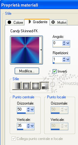 Imposta il colore su Gradiente e seleziona il gradiente Candy Skinned-FK con i seguenti settaggi.