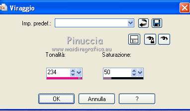 Regola>Tonalità e saturazione>Viraggio, con i settaggi precedenti.