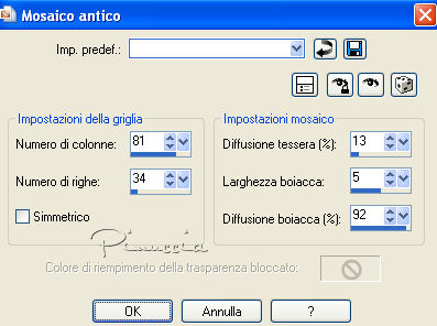 Effetti>Effetti di immagine>Motivo unico, con i settaggi standard.