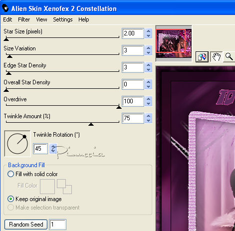 Ripeti l'Effetto Constellation, cambiando Star Size con 3,00 e senza cliccare su Random Seed.