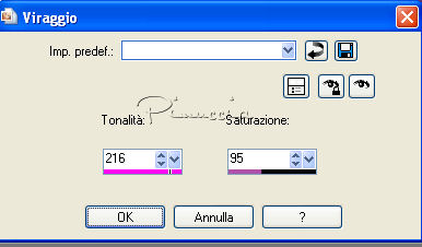 Regola>Tonalità e saturazione>Viraggio, con i settaggi precedenti.