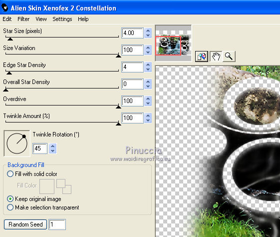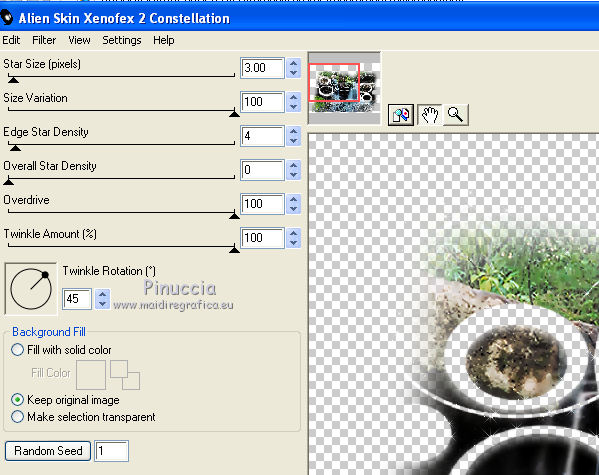 Ripeti l'Effetto Constellation, cambiando soltanto Star Size con 3,00, senza cliccare su Random Seed.