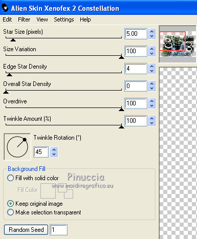 Ripeti l'Effetto Constellation, cambiando soltanto Star Size con 5,00, senza cliccare su Random Seed.
