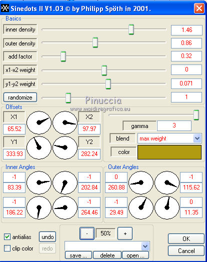 Effetti>Plugins>Dragonfly Sinedots II, con il colore #b29c12.