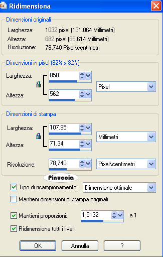 Immagine>Ridimensiona, a 850 pixels di larghezza, tutti i livelli selezionato.