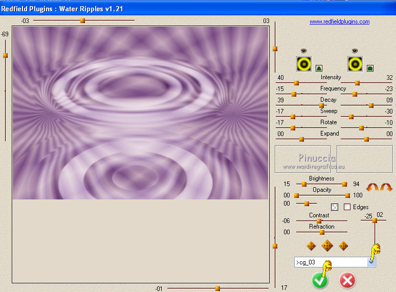 Contiene le impostazioni predefinite create da Christa per il filtro Water Ripples.