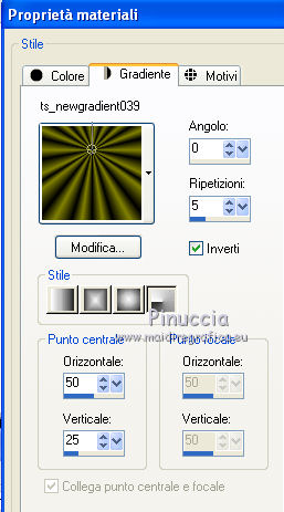 Passa il colore di primo piano a Gradiente, e seleziona il gradiente ts_newgradient039, con i seguenti settaggi.