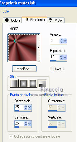 Imposta il colore di primo piano su Gradiente e seleziona il gradiente JM007 con i seguenti settaggi.