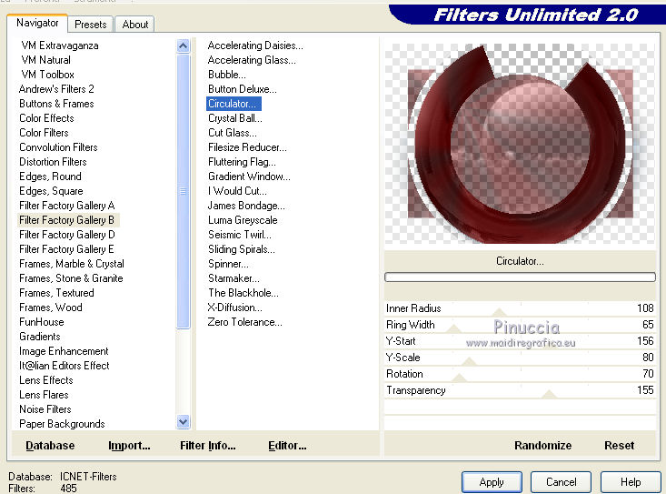 Effetti>Plugins>Filters Unlimited - Filter Factory Gallery B - Circulator.