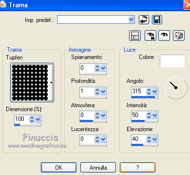 Effetti>Effetti di trama>Trama - seleziona la trama Tupfen con i seguenti settaggi.