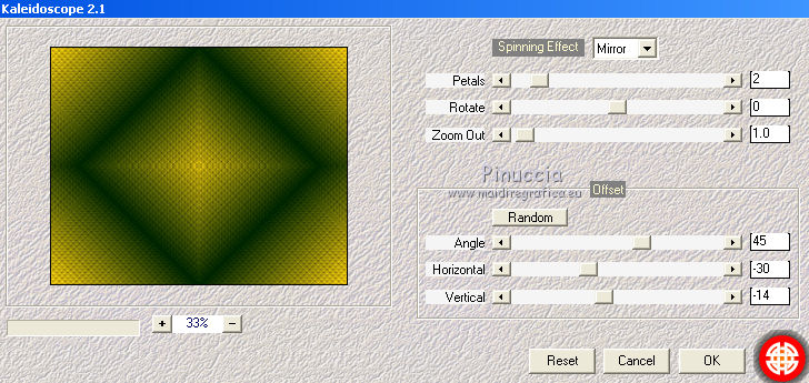 Effetti>Plugins>Mehdi - Kaleidoscope con i seguenti settaggi.