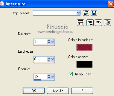 colore intessitura: colore di sfondo; colore spazio: colore nero.