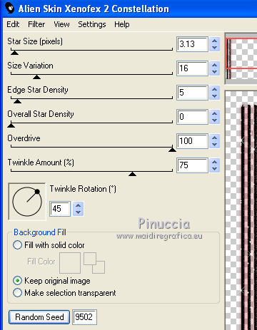 Ripeti l'Effetto Constellation, cambiando Star Size con 3,13 e cliccando su Random Seed.
