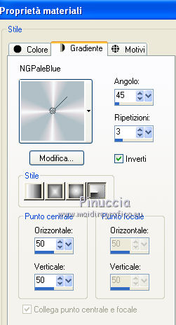 Passa il colore di primo piano a Gradiente e seleziona il gradiente NGPaleBlue con i seguenti settaggi: