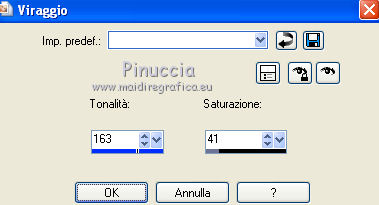 Regola>Tonalità e saturazione>Viraggio, con i settaggi precedenti.