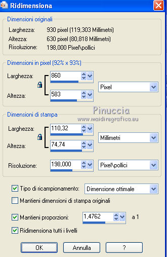 Immagine>Ridimensiona, a 860 pixels di larghezza, tutti i livelli selezionato.