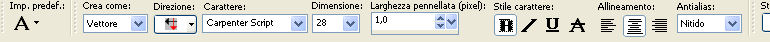 settaggi usati con PSP 9; dovrai regolare la dimensione in base al testo e alla versione di PSP che stai usando