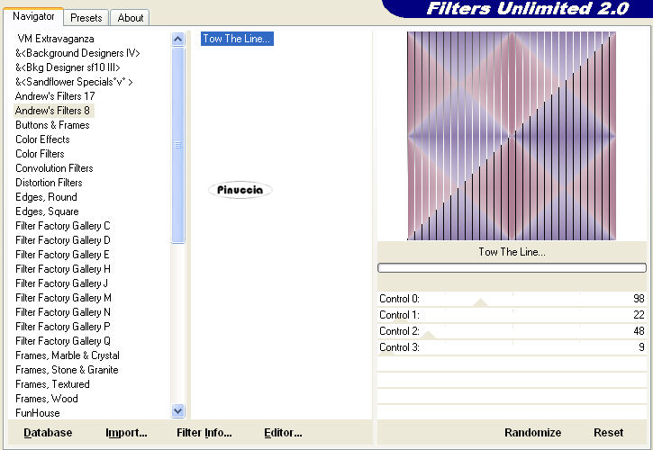 3. Effetti>Plugins>Filters Unlimited - Andrew's Filter 8 - Tow the line.