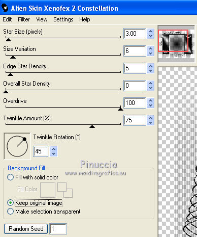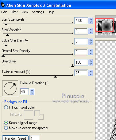 Ripeti l'Effetto Constellaton, cambiando soltanto Star Size con 4,00, senza Random Seed.