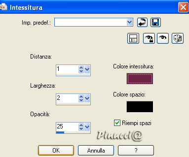 colore intessitura: colore di sfondo; colore spazio: nero.