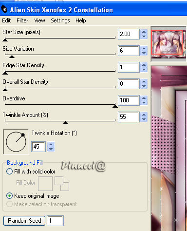 Ripeti l'Effetto Constellation, cambiando soltanto Star Size con 3,00, senza Random Seed.