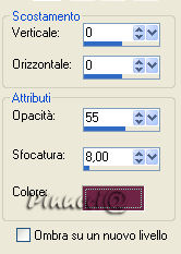 Effetti>Effetti 3D>Sfalsa ombra, con i settaggi precedenti.
