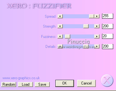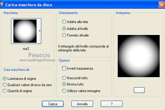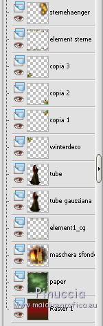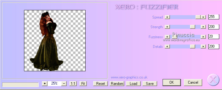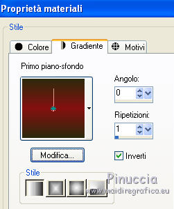 qui puoi trovare qualche risposta ai tuoi dubbi. Se l'argomento che ti interessa non è presente, ti prego di segnalarmelo. Questo tutorial è stato creato con PSP 9, ma può essere eseguito anche con le altre versioni di PSP. Per tradurlo, ho usato PSP X. Questo tutorial è una creazione di ©Christa e non può essere copiato su altri siti nè essere offerto per il download. Lo stesso vale per la mia traduzione. Il materiale viene da vari gruppi di condivisione. Il copyright appartiene ai rispettivi autori. Grazie ai creatori dei tubes che mettono a disposizione il loro lavoro in vari gruppi di condivisione. Rispetta il lavoro degli autori, non cambiare il nome del file e non cancellare il watermark. Occorrente: Un tube a scelta. Il resto del materiale qui Per i tubes grazie Chaosgaby e PhiloetSophia utilizzati con il permesso da deviantart ©Christa fotomanipolazione http://silberlocke.deviantart.com e http://silberlocke.deviantart.com Christa richiede che sull'immagine sia aggiunto il testo: "© All copyrights belongs to the original artists. I'm just the designer" Filtri: in caso di dubbi, ricorda di consultare la mia sezione filtri qui Xero - Improver, Fuzzifier qui Nik Software Color Efex Pro qui Prima di iniziare anticipo una cosa importante per il tutorial. Le mie descrizioni si riferiscono sempre al modo in cui creo la mia immagine. Per altri tubes e colori, potrebbe essere necessario modificare le mie impostazioni. Gli elementi possono essere colorizzati. Questo non lo scriverò più nel tutorial. ![]() Metti la maschera nella cartella Maschere. Apri il resto del materiale in PSP. 1. Imposta il colore di primo piano con #851111, e il colore di sfondo con #2d2a0d. Passa il colore di primo piano a Gradiente, stile Lineare, con i seguenti settaggi. ![]() 1. Apri una nuova immagine trasparente 800 x 800 pixels, e riempila con il gradiente.Livelli>Nuovo livello raster. Selezione>Seleziona tutto. Apri l'immagine jpg "swiateczne tapety christmas" e vai a Modifica>Copia. Torna al tuo lavoro e vai a Modifica>Incolla nella selezione. Selezione>Deseleziona. Effetti>Plugins>Nik Software - Color Efex Pro - Bi-Color Filters. Colorset Brown 1. ![]() Effetti>Plugins>Xero - Improver: ![]() 2. Apri "element1_cg.psd" e vai a Modifica>Copia. Torna al tuo lavoro e vai a Modifica>Incolla come nuovo livello. Apri il tuo tube e vai a Modifica>Copia. Torna al tuo lavoro e vai a Modifica>Incolla come nuovo livello. Il mio tube è una manipolazione di ©Christa. La manipolazione è stata operata sui capelli e sulla gonna. ![]() Livelli>Duplica. Attiva il livello sottostante dell'originale. Regola>Sfocatura>Sfocatura gaussiana - raggio 15. ![]() Attiva il livello superiore. per dare un aspetto glitterato al vestito, Christa ha usato lo strumento Selezione a mano libera , da punto a punto,e ha selezionato il viso, il collo e le spalle. ![]() Selezione>Inverti. Effetti>Plugins>Xero - Fuzzifier. ![]() Infine, ha usato il filtro Nik con colori adatti al tube. Selezione>Deseleziona. 3. Attiva il livello Raster 2 (l'immagine in jpg). Livelli>Carica/Salva maschera>Carica maschera da disco. Cerca e carica la maschera ma3. ![]() Livelli>Unisci>Unisci gruppo. Effetti>Plugins>Xero - Fuzzifier. ![]() Apri "paper.psd" e vai a Modifica>Copia. Torna al tuo lavoro e vai a Modifica>Incolla come nuovo livello. Livelli>Disponi>Sposta giù. Cambia la modalità di miscelatura di questo livello in Luce netta. Attiva il livello superiore. Apri "sternenhänger.psd e vai a Modifica>Copia. Torna al tuo lavoro e vai a Modifica>Incolla come nuovo livello, Spostalo in alto a destra.Cambia la modalità di miscelatura di questo livello in Luce netta. Apri "element_sterne" e vai a Modifica>Copia. Torna al tuo lavoro e vai a Modifica>Incolla come nuovo livello. Cambia la modalità di miscelatura di questo livello in Luce netta. Livelli>Disponi>Sposta giù. 4. Apri "winter_deco.psd" e vai a Modifica>Copia. Torna al tuo lavoro e vai a Modifica>Incolla come nuovo livello. Spostalo nell'angolo in alto a sinistra.Livelli>Disponi>Sposta giù. Livelli>Duplica. Immagine>Rifletti. Livelli>Duplica. Immagine>Capovolgi. Livelli>Duplica. Immagine>Rifletti. Attiva il livello superiore. Apri "frame_text.psd" e vai a Modifica>Copia. Torna al tuo lavoro e vai a Modifica>Incolla come nuovo livello. Spostalo in basso a destra.Apri "rand_cg.psd" e vai a Modifica>Copia. Torna al tuo lavoro e vai a Modifica>Incolla come nuovo livello. Su nuovi livelli, aggiungi il tuo nome e/o il tuo watermark e i copyright delle immagini usate. Questa è la mia paletta dei livelli. ![]() ![]() Livelli>Unisci>Unisci tutto e salva in formato jpg. ![]() Se hai problemi o dubbi, o trovi un link non funzionante, o anche soltanto per un saluto, scrivimi. 21 Novembre 2011 |