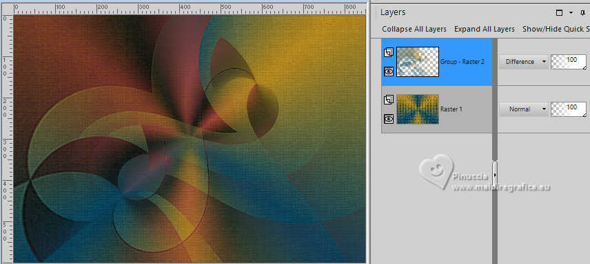 6. Open the layer Raster 1 and stay on the layer of the mask, Raster 2.